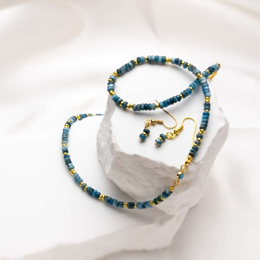 Blue spacers with yellow green rondelles