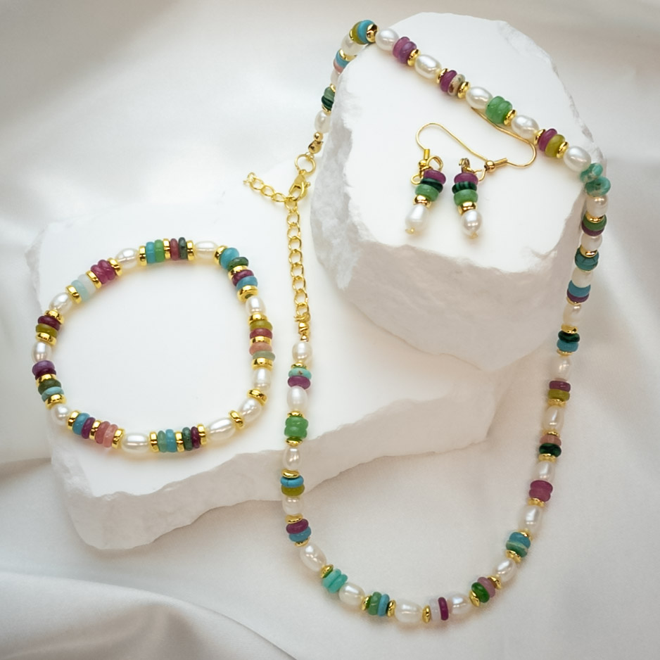 gemstone stack necklace to pair with our gemstone earrings.